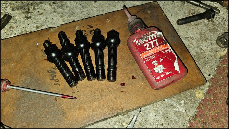 I use a high-strength threadlock — Loctite 277 works well for me. It’s strong enough to stop the studs loosening when you remove the nuts, but you have to replace them or the drive flange if they are removed.